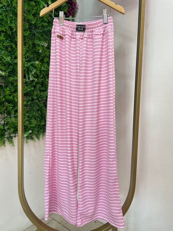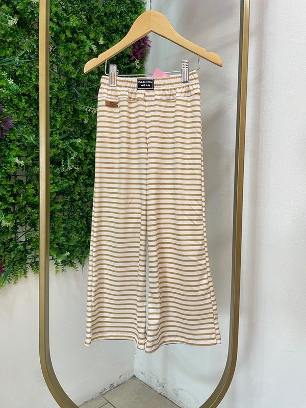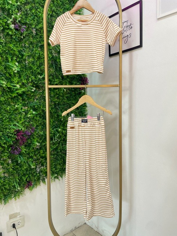 Fresco y cómodo, este conjunto incluye remera y pantalón palazzo con estampa a rayas, ideal para un look moderno y divertido. Disponible en colores rosa y beige y talles 4 al 16, combina practicidad y estilo para el día a día o salidas especiales.