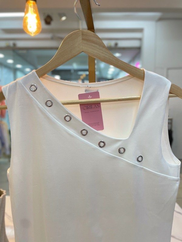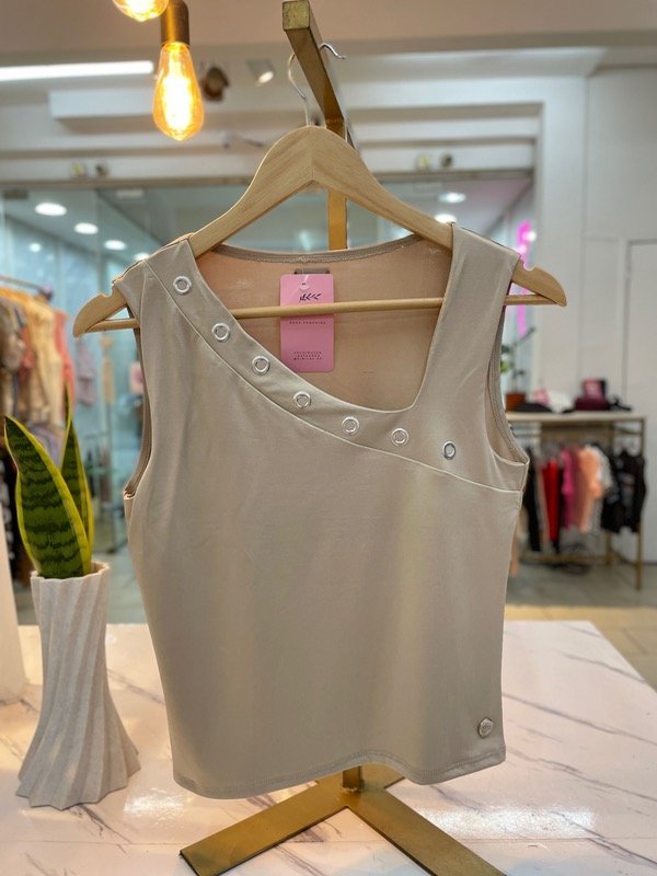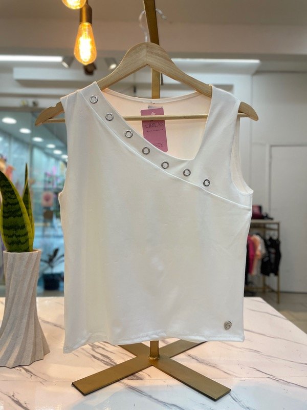 Musculosa de diseño moderno con cuello asimétrico, ideal para un look elegante y diferente.