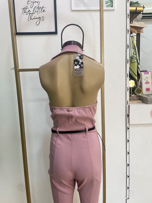 La espalda descubierta suma un toque distintivo y femenino, mientras que el pantalón oxford estiliza la silueta y alarga visualmente las piernas.