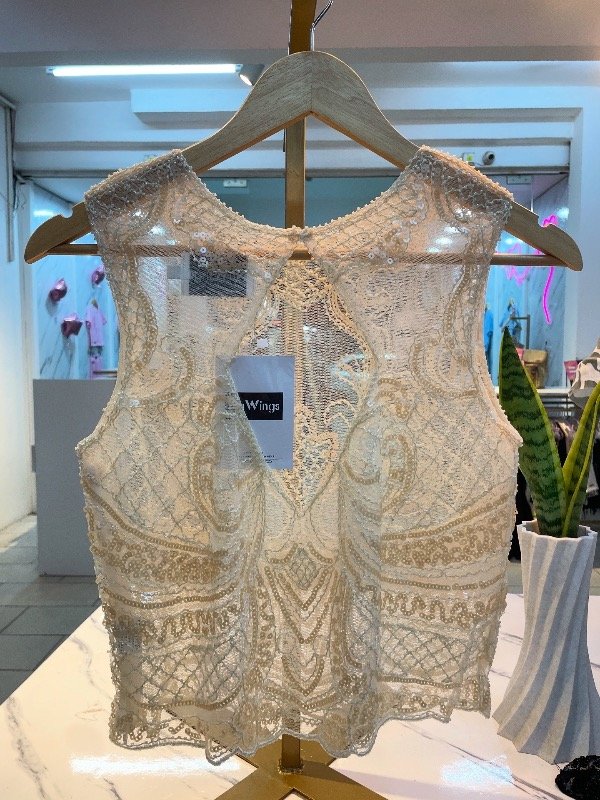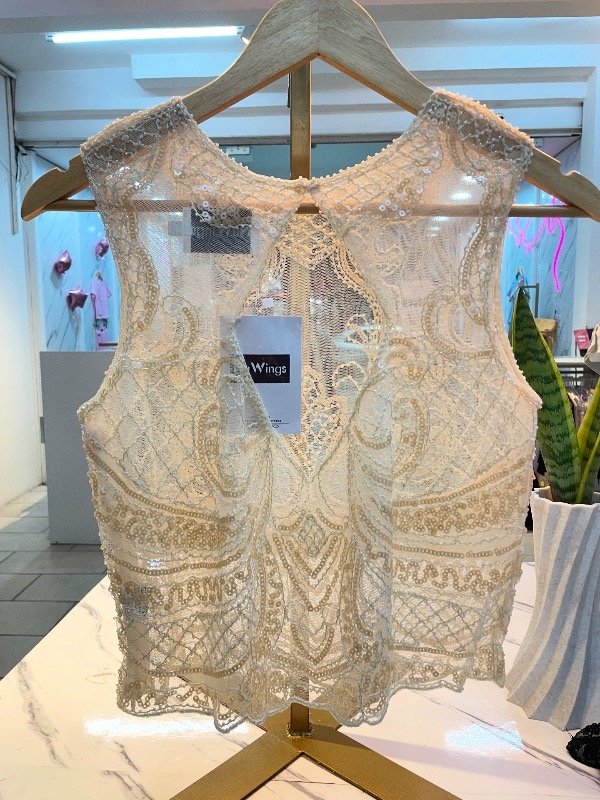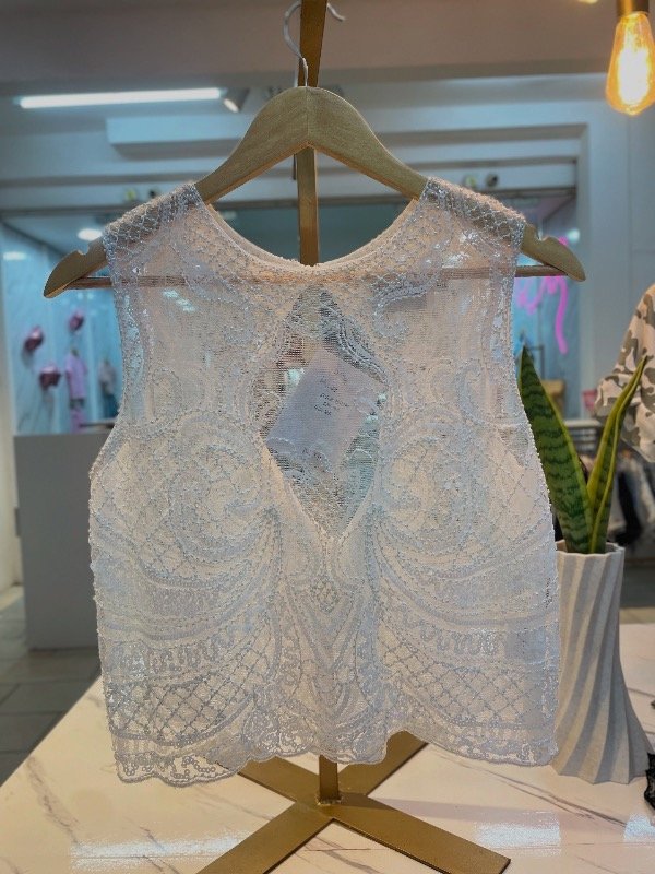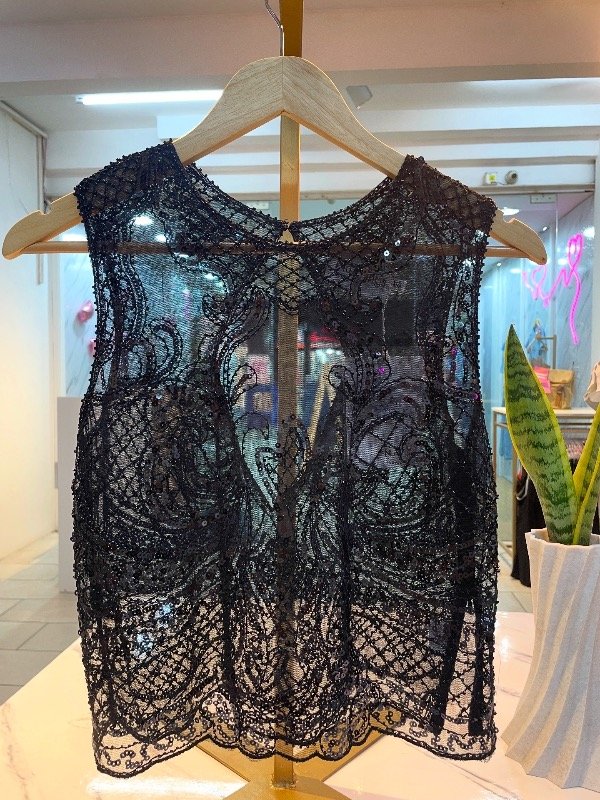 Top de tul elastisado bordado con lentejuelas y mostacillas 💎 Súper delicado, femenino y con un brillo espectacular 😍