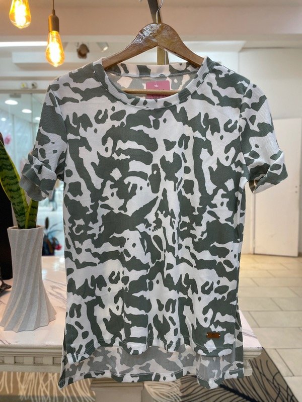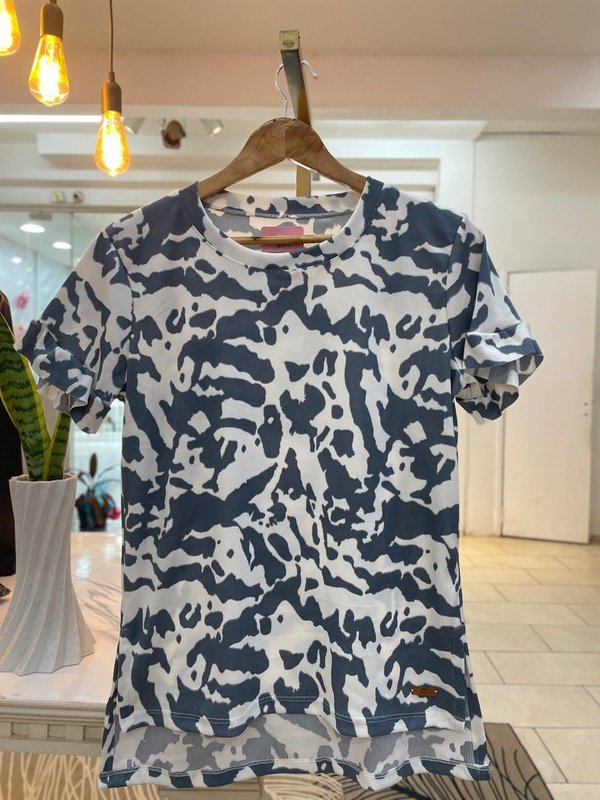 Comodidad y estilo en una sola prenda. Nuestra remera de morley suave combina un fondo color crema con un delicado estampado en azul y verde, perfecta para cualquier ocasión casual. Disponible en talle único, se adapta fácilmente a distintos estilos y looks.