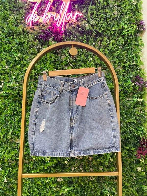 La mini pollera de jean clásica que no puede faltar en tu guardarropa. De corte recto y estilo atemporal, es una prenda versátil que se adapta a cualquier temporada y ocasión.