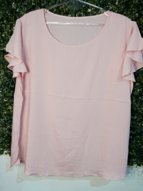 Blusa de fibrana lisa, con velados en las mangas. Variedad de colores y talles.