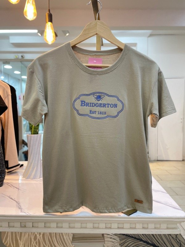 Para fans del romance y el estilo 💕 Esta remera tiene el detalle perfecto: un bordado delicado con la palabra Bridgerton que la hace especial y distinta. Algodón premium