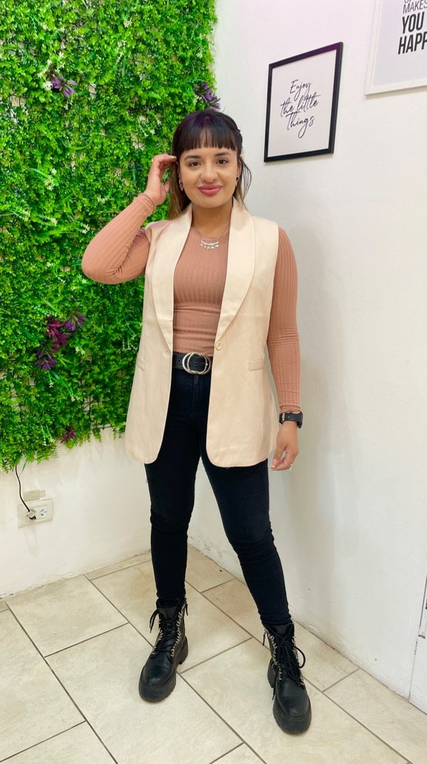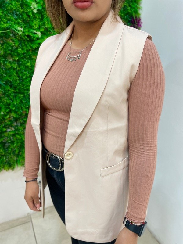 Su diseño sastrero de corte largo aporta elegancia y estilo, ideal para combinar con pantalones de vestir, jeans o shorts, creando un outfit sofisticado y versátil.