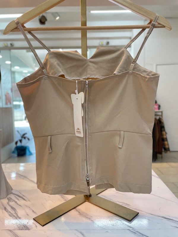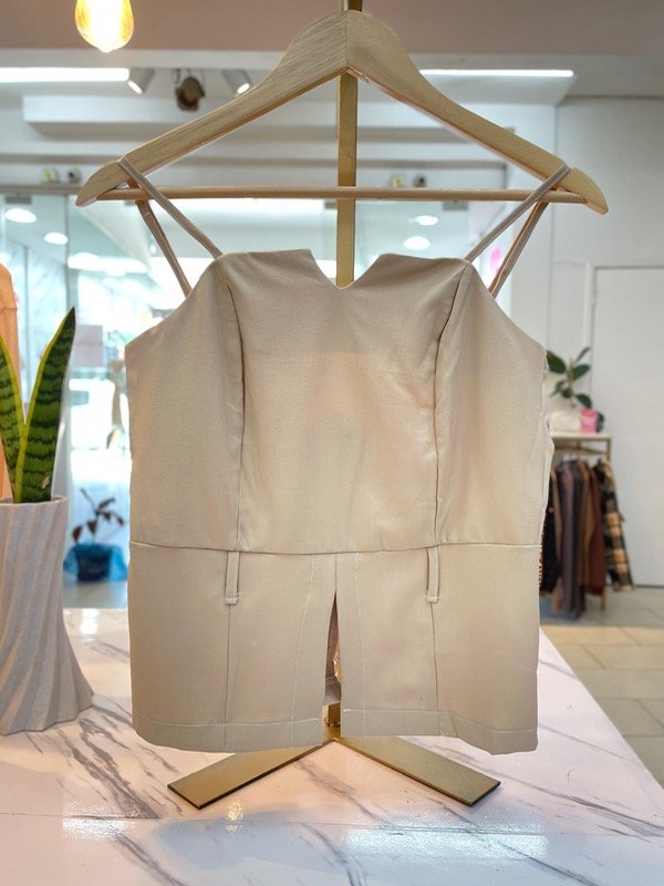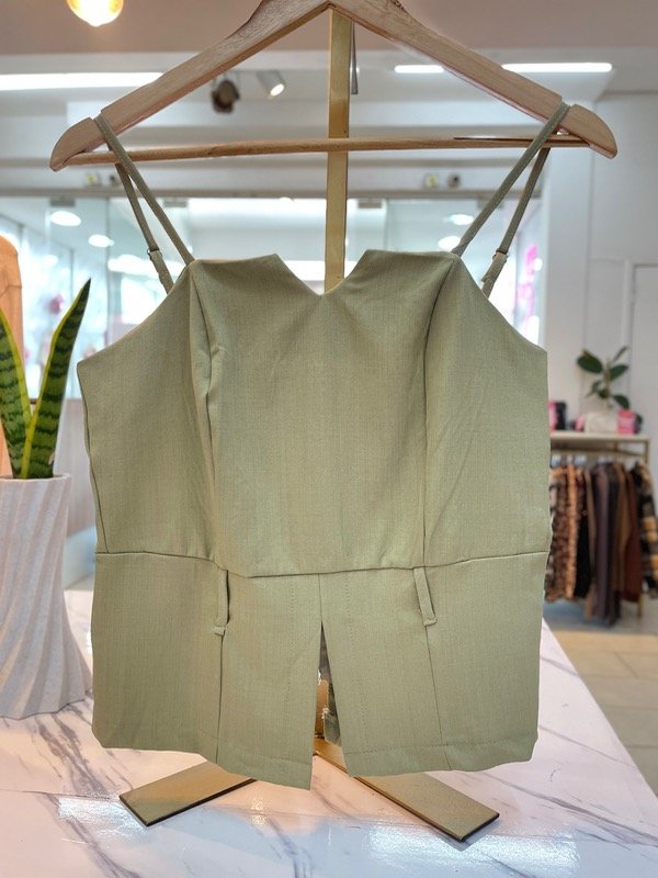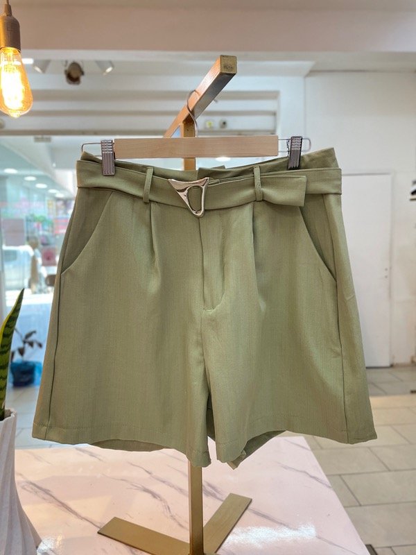 Luce sofisticada y fresca con este conjunto sastrero compuesto por short y top con tiritas. La espalda con escote cuadrado y las tiritas regulables aseguran un ajuste cómodo y femenino, mientras que el cinto incluido realza la cintura. Disponible en talles M a XL y en colores beige y verde, es la elección perfecta para un look elegante y veraniego.