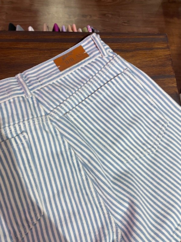 Modelo de denim con diseño rayado en celeste y blanco, súper canchero y versátil 💫