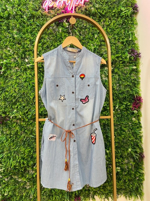 Vestido tipo camisero corto, con estampa rayada y un diseño súper canchero y moderno.